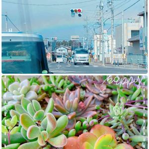乗り遅れてひとりで、つぶつぶの日❣️ ◆写真上段は、虹の玉🌈 左が昨年11月、右が今年1月。 グラデーション紅葉🍁嬉しい😆💕 ◆写真下段は、つぶつぶトリオ⭐️ セリアの受皿付キューブ型鉢3個と ダイソーの長いカゴが シンデレラフィット👠✨✨ 鉢の移動にピッタリなので 愛用しています💓