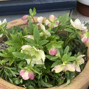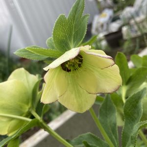 黄色に紫色の縁取りのクリスマスローズ たくさんの花を咲かせてくれました。 今年のクリスマスローズシーズンはもうすぐ終わりますね。 寂しいなぁ😞 こぼれ種から芽が出ているのを見つけました。 ポット上げするか?迷っています。