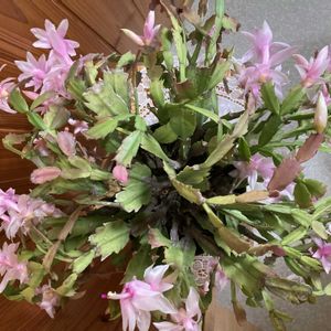 シャコバサボテン 管理が悪いから、好き勝手な方向に向かって花が咲いているので、花が終わったら株分けしたいと思っています。
