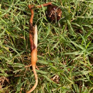 種子をネズミに齧られたオガサワラビロウ。 子葉柄が変色して腐ってたんで死んでると思いきや地下部でしっかりと子葉と根を形成してました。 本来ならまだ胚から栄養をもらってる筈なんで無事に成長出来るか疑問ですがとりあえずまた埋めときました(´・ω・`)