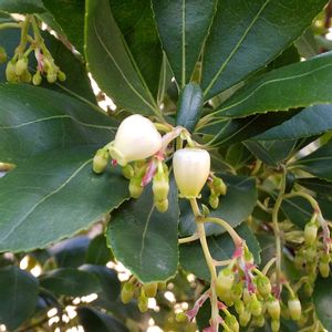 花は両性花 鐘形 果実は直径1~2cm 表面はザラつく🟡🟠🔴 苺の木🍓 ツツジ科