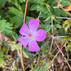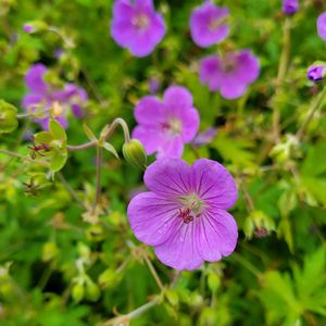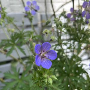 今の季節、こちらでは珍しく、ゲラニウム ジョリービーが咲きました いつもの青じゃなくってちょっと赤みが強い 雨に打たれて倒れていたので支柱をたてました せっかく咲いたのでパチリ📷雨で散っているお花も 今年は、ゲラニウムの夏越しが難しかった🥲ジョリービーが夏越し出来るのはロザンネイの系統だからかな?