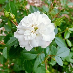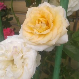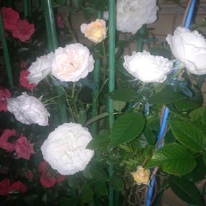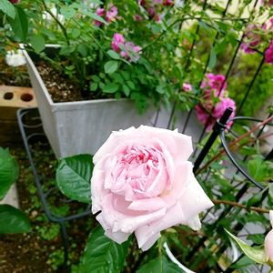 慌てん坊な我が家のバラ🌹 …5/25頃open gardenだったのは何年前の事かしら⁉️ そんな事言ってても仕方無いのだけれど、連休に霜も降りたなかったけれど😅 さあ大変!バラが咲く前にコニファー4本の枯れ枝を処理して…と気合を入れたけれど間に合わず‼︎ 1、2 今朝はいきなり大輪のスパニッシュビューティーを発見しました😱💗🎶 隣に植えてしまった、キングらしきミニツルバラの枝がコニファーのてっぺん近く迄伸びてるのに気付き、さぁ〜何とかしなければと焦っただけで、未だ風に揺れてます🙂↕️ 3 こちらは4/25picの🌹と同じものです。二週間経ってやっと大輪になりました。 4 オールドローズだったような⁈大きな柘植の下で小さな蕾のままです。 5 こちらも小さな蕾のまま何日も経ってます。また☔️が降ってきそう🙂