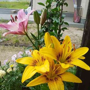 黄色百合は、✂️切って~部屋に⸜(* ॑꒳ ॑* )⸝♪ 今日は\゜\、\・、\、\・。゜、\・\。゜\、、\・。゜\、・\\・\。゜\、\゜\、\・、\、\・。゜、\・\。゜、☔雨 ☔ 庭の園芸は ナシィー(「🍐・ω・)「🍐