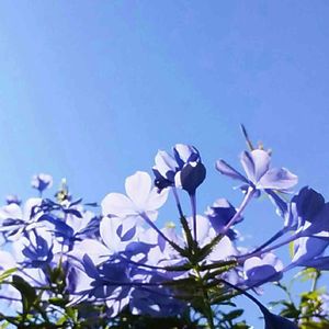 こんばんは😃🌃 今日も一日お疲れ様でした<(_ _*)> 昨日のベランダ🎵 花友さんから頂いたルリマツリ😉💓 昨日は青空がとっても綺麗だったので💙 しゃがんで下から撮ってみました😉💓 ルリマツリさんの後ろ姿も綺麗です~ 。.:*:・'°☆♫(*´▽`*♡。.♬:*:・♪'°☆~