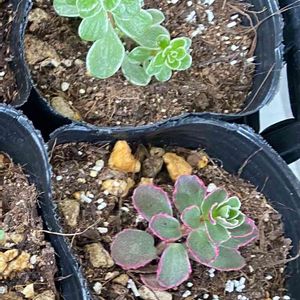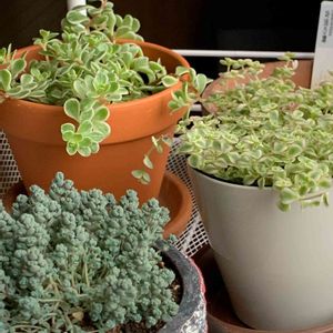これは上が覆輪丸葉万年草、下がトリカラーでよいでしょうか? いいねしてくださった方ありがとうございます♪