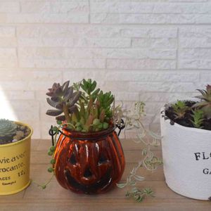 昨日、母から頂きました(*´▽`人)アリガトウ♡ ハロウィンの鉢が可愛い🎃 右のセンベルビウムは白い虫にやられててすぐ水洗いと、泡洗剤で処理…←いいのか?様子見です😅 左の巻絹さんはおしとやかですね~ またそれぞれ観察です(*^^*)