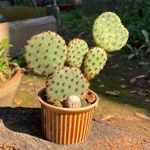ガラパゴス金刺団扇 Opuntia echios var.gigantea 成長遅めのウチワサボテンに 子株ちゃんが出てきました✨✨ しかし…後ろにチラッと👀写っている 別のウチワサボテン🌵は子株モリモリです‼️