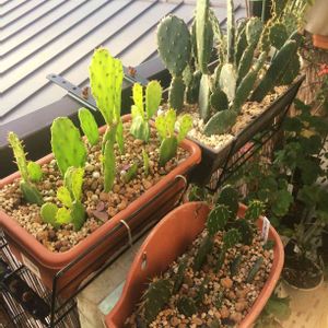 うちわサボテンの子株が急成長してます🌵 食用ノパルを通販したときに挿木用にと、芽が出かけてる大きめのを入れてくれたんですが、それから2か月ほどでこんなに育ってくれました! 沢山育てて庭植えにするつもり!あとハウスで食用にも育てたいな〜と想像は膨らみます🤔💭