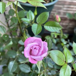 待ちに待っていた香りのミニ薔薇ベンムーン、秋の1番花が咲きました🌸 やはり今回はいい香りを放っています〜 ピンクパープルのカラーで別名ムーンリバーと呼ばれています💗 夏前に少しうどん粉病になりましたがスプレーしたらそれも良くなり、他のミニ薔薇より元気で強く、茎もスッと真っ直ぐ強く伸びています。 育てやすい上にカラーと香りもいいのでおすすめのミニ薔薇さんですよー 今日は午後からお天気悪くなると思ってましたが晴れマークに変わりました☀️ 朝から明るい陽射しが降り注いでますよー 太陽を浴びてもっと咲いてねー🙏