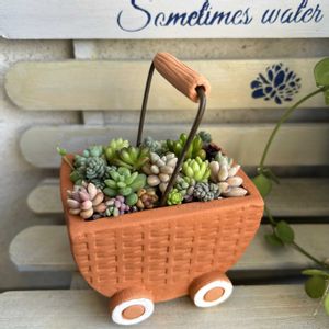 おはようございます。 今年の3月に作った鳥かご寄せが、中も外もボロボロになっていたので、解体して、一部の中身をリニューアルしてこちらにお引越しさせました。 これはテラコッタ陶芸作家のtsukiさんから購入した、テラコッタのお家鉢です。可愛いですよね💕 ダイソー産のギルバが主役。 鳥のピックもそのまま生かしてみました。 詳しい品種名は次のpicで。 前の鳥かご寄せは 🏷はなずきん鳥かご寄せ で見られます。 ギルバも狭い鳥かごの中でだいぶ育ちました😆