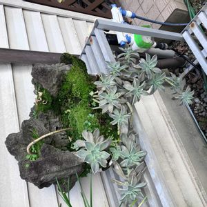 適当寄せ植えの多肉が可愛く育ってくれてます。 ほとんどお世話もしてないけどエケベリア・プリズムが綺麗なロゼットで、ありがたすぎます。