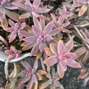おはようございます😃 🏷️peanyatsの日 🏷️るる かまぼこ板で繋がる輪 🏷️大好き❣️ソニーエンジェル 1枚目は、待ち遠しい春色のpeanyatsのリメ鉢のブルードラゴン。赤い爪が、大好きです❤️ 2〜3枚目は、背景の地植え花壇の様子。 25日はなずきんさんの投稿で、 秋麗は、朧月と乙女心の交配したものだと初めて知りました🤩 花壇を作ったときから、秋麗は、丈夫で初心者向きと聞いたので、花壇のあちこちに植えましたが、一年中元気。今は紅葉しピンク色で、可愛いです🩷 朧月は、義姉のご近所さんが、育てられないからと頂いたもの。乙女心は、リメ缶やリメ鉢で育てています。 4枚目は、昨日、NikkyさんのLINE販売でGETしたもの。 お楽しみ抽選会で、当選した苗は、チワワエンシス双頭でした💕 どうしても、今の時期、可愛いので紅葉したものを選んでしまいます❤️ 今週も宜しくお願いします🌿