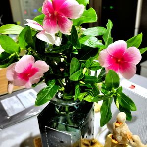 ビンカ✨ニルバーナカスケード 昨年から育てているニルバーナちゃん🌸可愛すぎて 挿し芽にしてコンパクトに家の中で年越しして今年も満開に🌸 このビンカ・日日草は這性なので、バスケットやハンギングにすると、垂れて可愛いんですよ💖