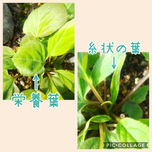 イワシャジン なんか見たことない葉っぱか出現👀 調べてみたら 栄養葉 というらしい かき分けてみると いつもの細い葉っぱ 出てる出てる😊 ヨッシャー🙌