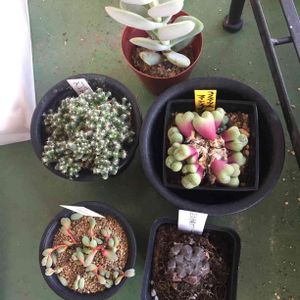 2019.9.30 大量購入品② オブツーサとコンプトニーが破格。 コノフィツム系は手を出してなかったのに、見た目の可愛いさで差し出してくる母、やはり直感で欲しいやつを手に取るわたし。 コノフィツムって真ん中の茶色のところ、向いてもいいのでしょうか? こちらの写真の方々は植え替え必須らしいので、今日やっちゃいます_(:3」z)_