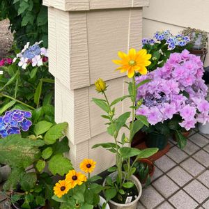 ルドベキア🌼 多年草で冬に枯れてしまいますが、春先に芽が出て今頃から晩秋まで咲いてくれる強い子です。 今年で背の高い子は4年目、低い子は3年目になります。鉢植えのまま毎年咲いてくれます。😊