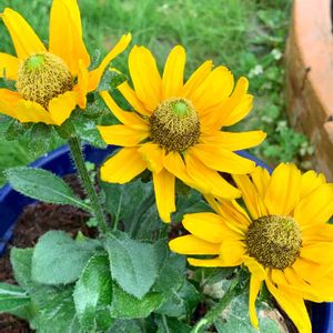今日のお花 ルドベキア🌻 種からのおちびちゃんです🤭 花芯がだいぶルドベキアらしくモコモコしてきましたよ✨🎵 今日も良い日でありますように😊💛