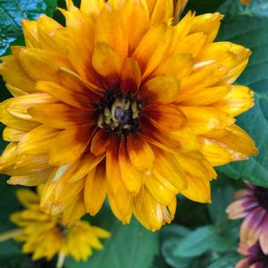 こんにちは(❁´ω`❁) 花友さんに頂いたルドベキアさんが咲始めています🌼 元気をくれるビタミンカラーで花弁の真ん中が焦げ茶色で可愛いです 🌼(*ˊૢᵕˋૢ*)︎💕︎💕