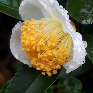 めいっぱい広がった黄色のシベ💛が可愛らしいお茶の花