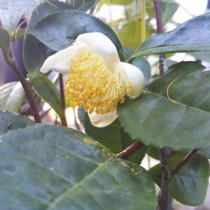 チャノキ 小さな椿のようなお花 みんな下を向いて咲くんですね お茶の木のお花って知りませんでした😳‼️ たくさん木があってたくさん咲いていました🤗