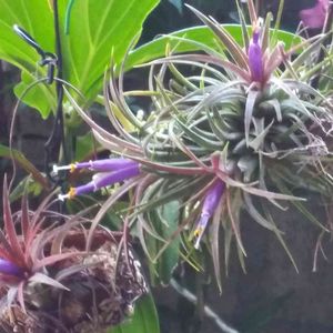 今日のお花🌼 エアープランツ 紫色の先から黄色い🌼 今年は、株分けしたせいか、葉の色が余り紅葉していません。 チランジア イオナンタ