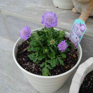 今日は日が暮れるまでに時間があったので、植え付けが進みました😊 スカビオサ ブルーバルーン🌼 昨年、日当たり不良な花壇に植えたら萎れてしまったので、今年は鉢植えにしてお日様たっぷり浴びてもらいます☀️☺️