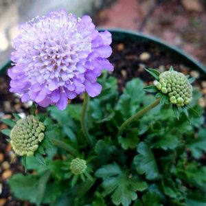 新しくお迎えしたスカビオサちゃん😊 初めてお見かけしたお花🥰💕 すごく可愛くて即買いしてしまった✨ 無事に大きくなってね🥳