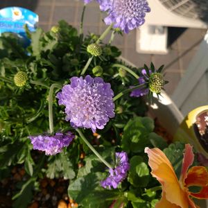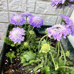 💜スカビオサブルーバルーン💜 ビオラレディの寄せ植えに入ってたスカビオサです。 ブルーバルーンのネーミング、フワッとした花がたくさんヾ(˙˘˙*)ポンポン🎈と咲くからかしら😍 冬に強く多年草で矮小タイプのようなので、蒸れの夏には弱そう。 蕾がたくさんあるので、これからブルーバルーン💙🎈たくさん飛びそうです。
