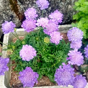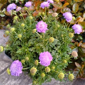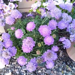昨日からの雨が振り続いています☔️ 鉢植えのスカビオサブルーバルーン こぼれるように咲いています.。◦♡ 地植えにする場所を探さないと(.•᎑•.)