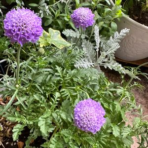 スカビオサ ブルーバルーンさん 2つ目咲きました🎶 寄せ植えの中でお花咲いてるのスカビオサさんだけなので1つで本当に寂しかったんですが…お花2つになって良かったです😅 次々咲いてくれたら良いんですけどねぇ💦
