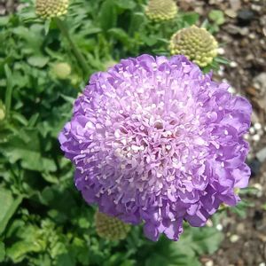 地植えのスカビオサ💜 今年も咲き始めています✨ 蕾もたくさん🎶これから楽しみにしています♡︎ʾʾ ♬︎*.:*