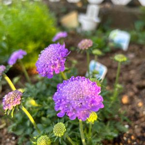 秋に植えたスカビオサが咲いてきました! 蕾もいっぱいで楽しみです💕