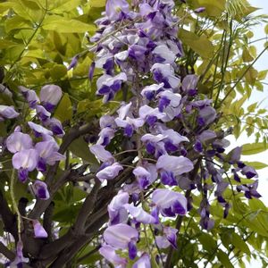 💜フジ(藤) 日本固有種で昔から愛され、源氏物語でも美しさの象徴とされました。マメ科でマメや花、若芽を食用にすることも出来ます。 ⚫︎マメ科 フジ属 ⚫︎原産 日本固有種 ⚫︎花期 4月〜6月