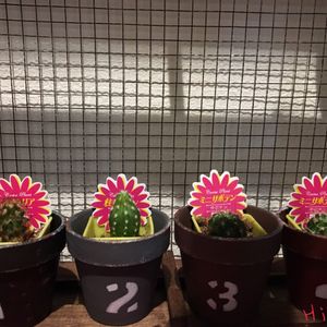だいーぶ前に塗ったナンバー4兄弟の鉢。 産直に出すか悩んでいます💦 サボテンをお一人様で植えるか? と試しにうちにあるダイソーサボさんをin。うん、好き。 私はこういうの大好き、だけど産直に来るお客さんはどうなんやろー。 サボテン、、、トゲがあるから好かん。な人もおるよねー。 280円くらいかなー。300円は高い? 無難にセダム寄せ? 朧月お一人様。。。 うーん、なーんか出しづらいです😭 自分で使った方がラクか😥悩ましい。