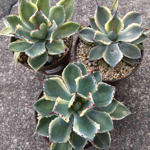アガベちゃん 名札紛失により種類がわからなくなりました💦 名前は可能性の一つで、当たっているかわからないです。 葉の幅が広がり土の表面があんまし見えなくなり、 水やりがめんどくさいです。