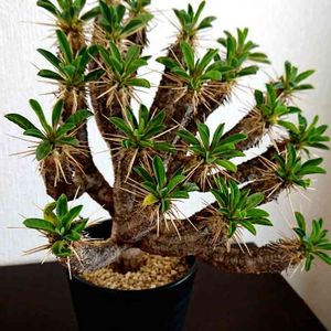 Pachypodium baronii var. windsorii 実生のウィンゾリーです。 パキポは色々な種類がありますが、ウィンゾリーだけは現地球より実生のフォルムが好きです。 毎日水を与えてもいいくらい、すぐに土が乾いてしまうほど元気な株です。 幹をもっと太らせたいので、このpicを撮った後すぐに全体の葉切りをしました。葉からの水の蒸散を防ぐ為です。 すぐに葉を繁らせるので、度々葉切りをしています。