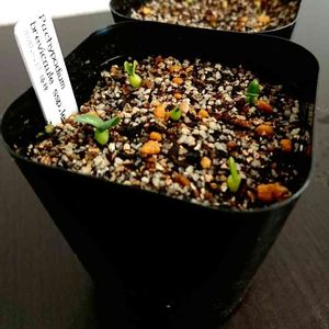 pachypodium brevicaule ssp. leucoxanthum 6月13日播種の恵比寿笑い。 グラキリスやメナベウムは、発芽も早く、成長も順調ですが、 恵比寿笑いは、とにかく遅い。 発芽の時点で時間がかかり、他のパキポとは同じ条件では発芽しないのかな?とモヤモヤ。 とにかく苦戦中。 種を蒔く前に12時間くらい水に浸してから播種したのですが、土に蒔いて数日しても反応がないので、もう一度水に浸してみると、効果が出たのか数粒発芽。 今、ようやく10粒発芽。 とにかく時間がかかるのと、少しでも蒸れると糸状菌が発生しやすい。 基本的にパキポの種子はカビやすいけど、この恵比寿笑いは異常にカビやすい気がします…。 でも、この丸々したボディが可愛くて気に入っています。 1粒でも多く発芽させたいな。