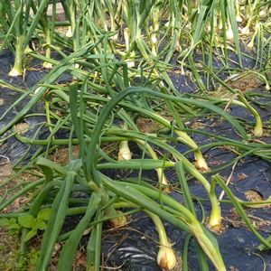 玉ねぎ収穫しましたー ベト病の不安もありながらなんとか7割くらいは大きく育ちました さて、うまく保存できるかな