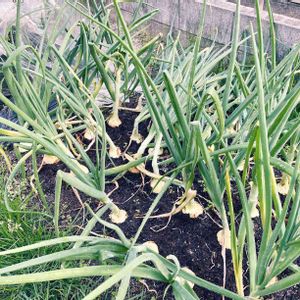 GWにがんばったこと💪 ずーっと手がつけられず、雑草に埋もれてしまった玉ねぎ🧅の畝の草取りをしました。 ビフォーの写真がないので、証拠隠滅って感じですが😅 雑草に埋もれすぎて日当たりも悪くなってしまい、草取りのダメージもありますが、もう一息収穫まで最後の成長がんばっておくれ〜。