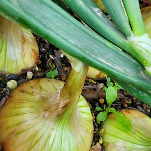 極早生玉ねぎは病気もなく無事に収穫できてます。トップゴールドはかなり扁平な品種というわけでもないようなので、まだ充分に肥大できてないのかな。