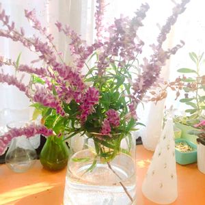 お庭のアメジストセージを剪定したのでらリビングに🌿 毎年綺麗に咲いてくれて嬉しいな☺️
