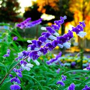 今朝の散歩道です。 みさと公園の花壇の、 アメジストセージが、綺麗でした。