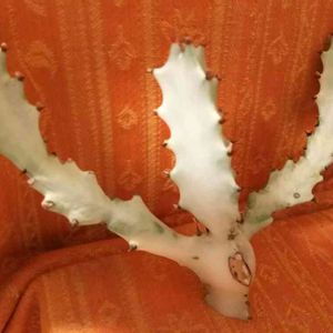 本日オペ決意✨ホワイトゴースト、カットした✂ なので記録しとく。 根元からの変色がどんどん上にあがり、今回カットした部分もシワシワになってきたの。 やっぱり調子悪いから、白毒液はほぼ出なかった。 ある程度乾燥したら突き刺します。 一応・・・親株も置いとく。 ひょっとしたら新芽が出るかもかも?? それにしても、我が家は寒すぎかな・・・🌀🌀 ミルクブッシュもシワシワ枯れてきた・・・🌀🌀