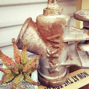 信州スキー&♨旅での鉄錆大物 水道管??何だろね? 2階でアレコレ小物をgetして、カフェでお茶☕してたら・・・目に飛び込んできたの✨👀 見に行ったら値段付いてる•*¨*•.¸¸♪✧ チャイ飲みながら考えたけど、後悔したくないから・・・☺ 今は結局・・・重しになった💧💦 多肉始めてから我が家にずっといる姫キリンと٩(⑅•ᴗ• )( •ᴗ•⑅)۶