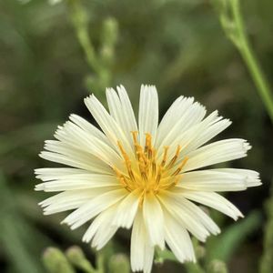 9.15 秋桜見に行った帰り道… 里山の山裾に咲いていた… アキノノゲシ 秋の野芥子… キク科 アキノノゲシ属 和名は春に咲くノゲシ(ハルノノゲシ)に似て、秋に咲くことから付けられた 乳草、ウマゴヤシ、ウサギグサなどの別名もある 高さは50〜200cm 大柄だが柔らかく、全体につやがない はじめは根出葉をロゼット状にだすが、やごて茎をたて花序を出す 花期は8〜12月 花は淡い黄色 直径2cmほどで 舌状花だけで出来ている 種子はタンポポの綿毛を小さくしたような形をしている レタスと同じアキノノゲシ属で、葉や茎を切ると白い液(乳液)が出ることから乳草の別名がある 出典∶ウィキペディア ✾花言葉✾ 平和 希望 謙虚 優美な心 清らかな愛 純粋な心 など多くの言葉があります その穏やかな見た目や白い綿毛が種を運ぶ様子から連想されるものが多いようです 出典∶AIによる概要 レモンイエローみたいな色… 優しいお花に思えます 秋桜のイエローキャンパスに似て 好きなお花です♡