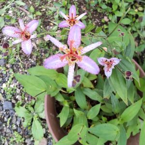 三光班ホトトギス 春に株分けした子が 雨の中 咲きました 親よりひと月ほど遅れて〜 一株に咲くのは テッペンにひとつだけ