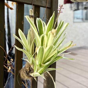 チランジアたちを外に出しました。 カプトメデューサエはもうすぐお花が咲きそうです。 大きめのガルドネリは網板に乗せきれなかったので、アーチにワイヤーでくくりつけてみました。