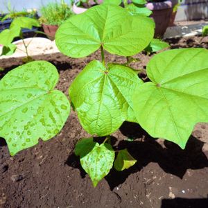 GWに作った花壇に植えた綿の芽がでました!帽子かぶって可愛い😄