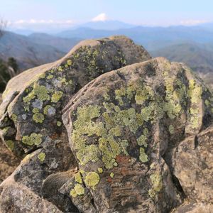 〜 絶景とお花を楽しむ稜線歩き🚶④ 〜 頂上の大菩薩嶺を早々に離れ眺めのいい稜線道を歩き始めます🚶 残念ながらこの辺りも季節的に花は未だ咲いておらず、石に生えていたチズゴケを🆙したいと思います🙋 1枚目:石に生えるチズゴケ ※その先に見えるのは富士山🗻 2枚目:マツの木越しの富士山🗻 3枚目:素晴らしき尾根道🎶 4枚目:親不知ノ頭という展望がいい場所からの眺望/南アルプス方面⛰️ 5枚目:親不知ノ頭という展望がいい場所からの眺望/富士山方面🗻